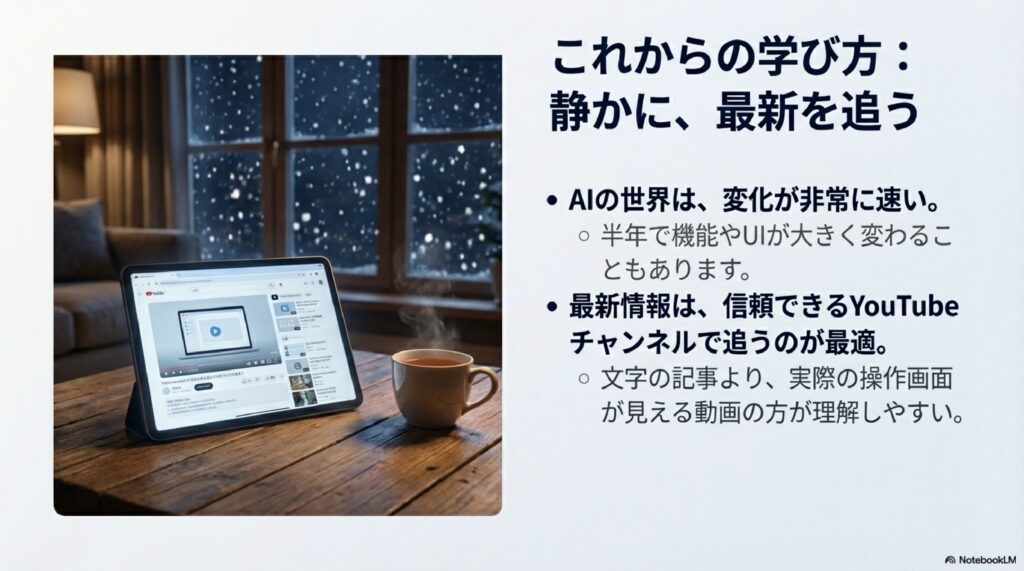 そんな方は、ぜひこのガイドを参考にしてみてください。雪国・新潟の冬を楽しみながら、楽しく・無理なくAIを自分の「相棒」にしていきましょう!😊